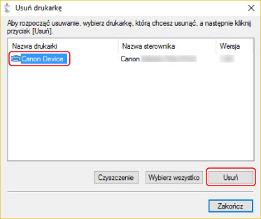 Na ekranie [Usuń drukarkę] kliknij opcję [Zakończ].