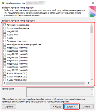 Выберите профиль конфигурации → нажмите [Далее].