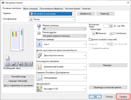 Справка отображается после нажатия на команде [Справка] на экране настроек печати драйвера.