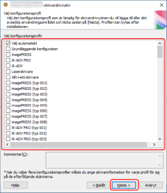 VIKTIGT!Om enheten är ansluten till datorn som du använder anger du i normalfallet [Välj automatiskt]. Välj konfigurationsprofil manuellt endast om datorn inte kan anslutas till enheten och enhetsinformationen inte kan hämtas eller om det är nödvändigt att anpassa konfigurationsprofilen.