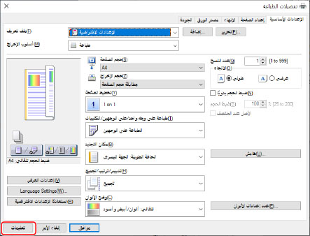 يتم عرض المساعدة بالنقر على [تعليمات] في شاشة إعدادات الطباعة لبرنامج التشغيل.
