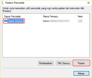 Dalam skrin [Padam Pencetak], klik [Keluar].