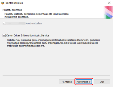 [Canon Driver Information Assist Service]: hautatu hau gailuaren informazioa lortzeko funtzioa erabili nahi baduzu inprimaketa-zerbitzariaren ingurunean.