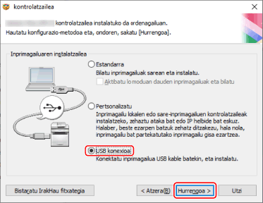 Hautatu [USB konexioa] → sakatu [Hurrengoa].