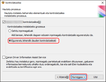 Hautatu [Pertsonalizatu] [Inprimagailuaren instalatzailea] aukeran → sakatu [Hurrengoa].