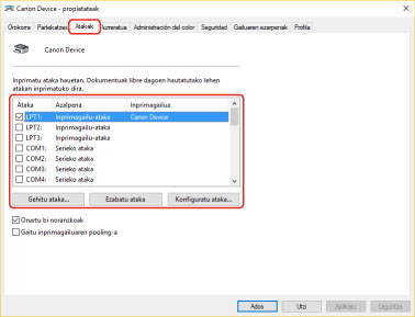 Erabiltzen ari zaren gailuaren arabera, baliteke [Tipo de dispositivo] > [Estándar] eremuan hautatzen duzun izena [Canon Network Printing Device with P9100] eremuan adierazitakoarekin bat ez etortzea.