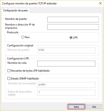 TCP/IP ataka estandarra gehitzeko, gailuaren izena edo IP helbidea idatzi behar duzu. Gailuaren izen gisa, erabili gailua sarean ezagutzeko erabiltzen den izena. Ez badakizu gailuaren izena edo IP helbidea, galdetu sarearen administratzaileari.