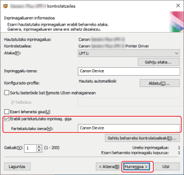 Hautatu [Erabili partekatutako inprimag. gisa] → aldatu [Partekatutako izena], behar izanez gero → sakatu [Hurrengoa].