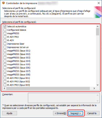Seleccioneu un perfil de configuració → feu clic a [Següent].