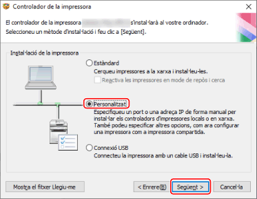 Seleccioneu [Personalitzat] → feu clic a [Següent].