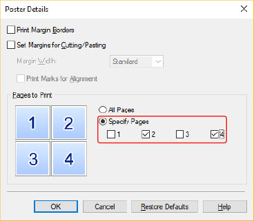 [Poster Details] dialog box > [Pages to Print] > [Specify Pages]: [2] and [4]