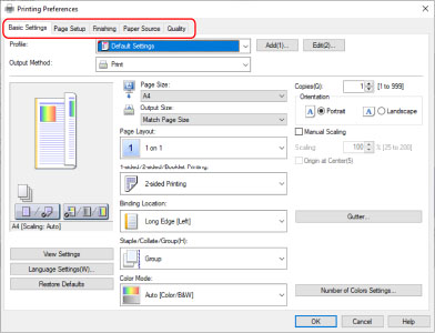 NOTEIf the function you want to use is not displayed in the print settings screen, configure the print settings after enabling the functions of the device by acquiring the device information etc.