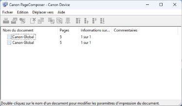 Dans l'écran d'accueil Canon PageComposer, sélectionnez les fichiers que vous souhaitez combiner, à partir de la liste → cliquez sur [