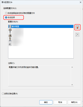 须知如果未选择适合所使用设备的配置文件,则设备的一些功能可能无法使用。