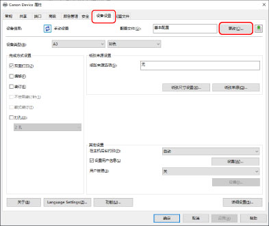 显示[设备设置]页→单击[更改]。