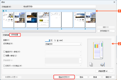可以将多个文件组合成一个文件进行打印。可使用Canon PageComposer更改组合文件的打印设置。