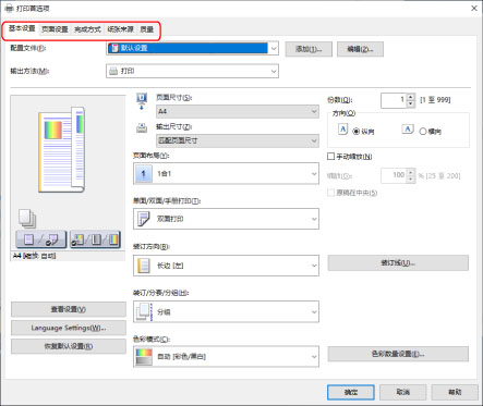 此部分介绍配置打印机驱动程序设置的基本步骤。