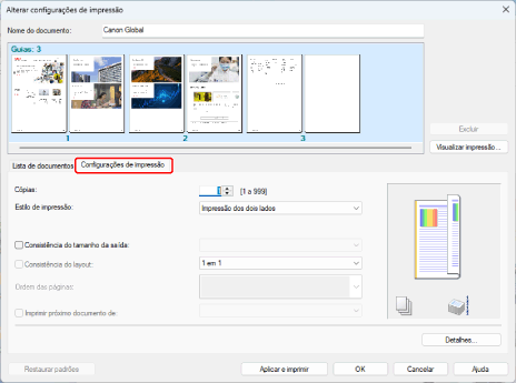 Você pode usar o Canon PageComposer para alterar as configurações de impressão de um arquivo.