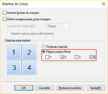 Caixa de diálogo [Detalhes do Cartaz] > [Páginas para imprimir] > [Páginas específicas]: [2] e [4]