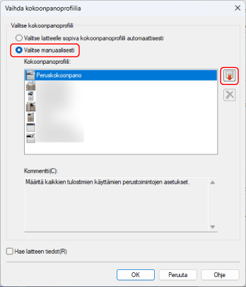 TÄRKEÄÄJos käyttämällesi laitteelle sopivaa kokoonpanoprofiilia ei ole valittu, jotkin laitteen toiminnoista eivät välttämättä ole käytettävissä.