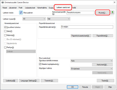 Valitse [OK] → valitse [Laitteen asetukset] -välilehdellä [OK].