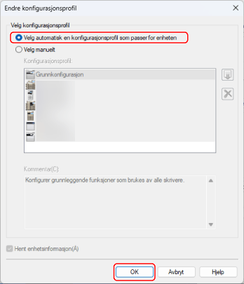 Velg [Velg automatisk en konfigurasjonsprofil som passer for enheten] → klikk på [OK].