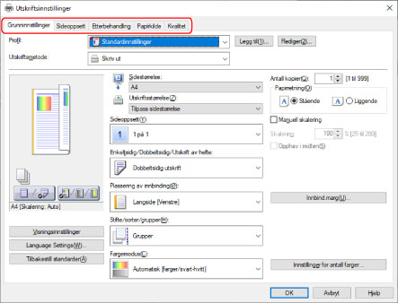 Dette forklarer den grunnleggende prosedyren for konfigurasjon av skriverens driverinnstillinger.
