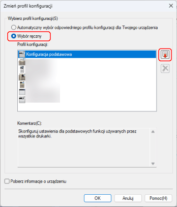 WAŻNEJeśli nie zostanie wybrany profil konfiguracji odpowiedni dla używanego urządzenia, niektóre z jego funkcji mogą być niedostępne.