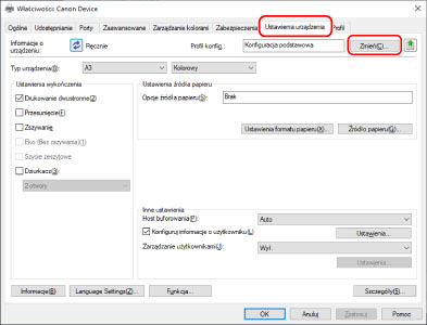 Wyświetl kartę [Ustawienia urządzenia] → kliknij przycisk [Zmień].