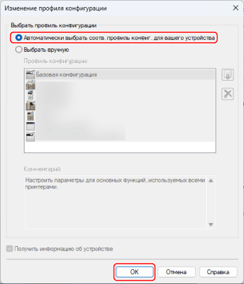 Выберите [Автоматически выбрать соотв. профиль конфиг. для вашего устройства] → нажмите [ОК].