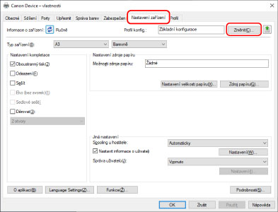Klikněte na [OK] → klikněte na [OK] na kartě [Nastavení zařízení].