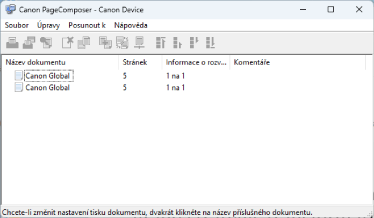 Zobrazí se hlavní obrazovka Canon PageComposer.