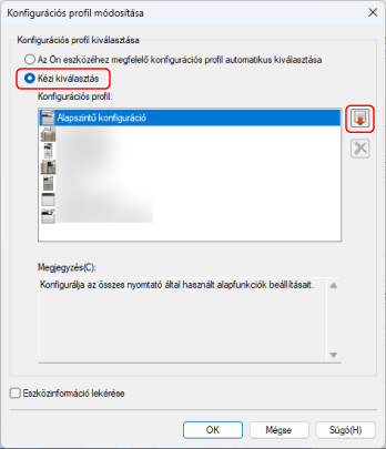 FONTOSHa nem a használt eszköznek megfelelő konfigurációs profilt választotta ki, előfordulhat, hogy néhány eszközfunkció nem lesz használható.