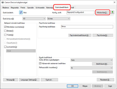 Jelenítse meg az [Eszközbeállítások] lapot → kattintson a [Módosítás] elemre.