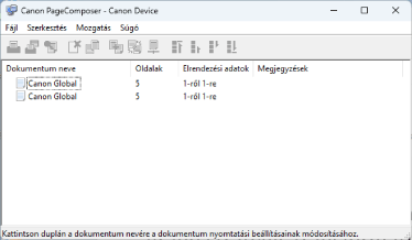 Lehetősége van több fájl egyetlen fájllá történő egyesítésére és kinyomtatására. A Canon PageComposer használatával módosíthatja a nyomtatási beállításokat az egyesített fájl szerkesztéséhez.