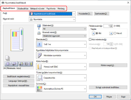 Ez a szakasz ismerteti a nyomtatóillesztő-program beállításainak konfigurálásával történő nyomtatás alapvető eljárását.