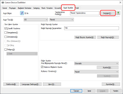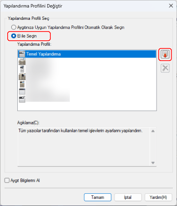 ÖNEMLİKullandığınız aygıt için uygun bir yapılandırma profili seçilmezse bazı aygıt işlevleri kullanılamayabilir.