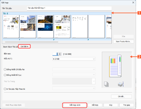 Nhấp vào [Kết Hợp và In].