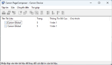 Trong màn hình chính Canon PageComposer, chọn tập tin bạn muốn kết hợp từ danh sách → nhấp vào [
