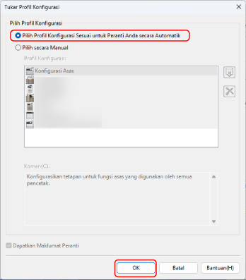 Pilih [Pilih Profil Konfigurasi Sesuai untuk Peranti Anda secara Automatik] → klik [OK].