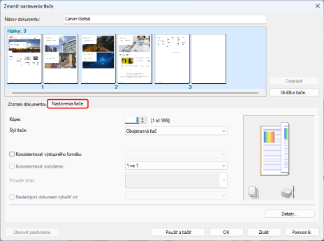 Pomocou aplikácie Canon PageComposer môžete zmeniť nastavenia tlače súboru.