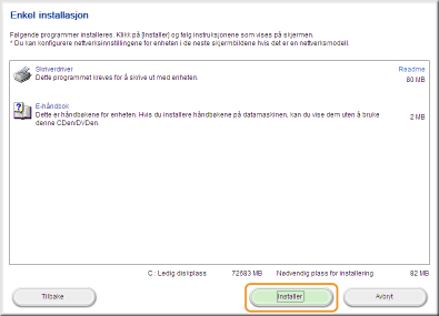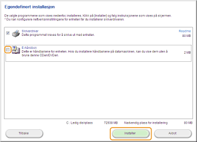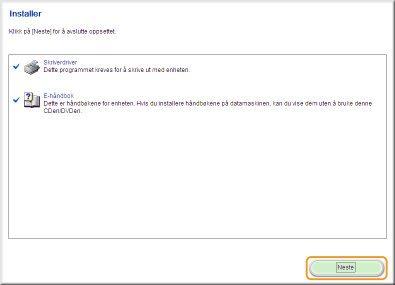 * Dette ikonet vises imidlertid ikke hvis du valgte [Egendefinert installasjon].
