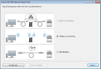 Velg [Trådløst LAN-tilkobling] og klikk på [Neste].