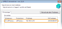 Velg avmerkingsboksen for skriveren du vil installere fra [Skriverliste].