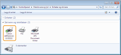 Hvis skriverdriveren ble korrekt installert, vil et ikon for den installerte skriveren vise i skrivermappen (Vise skrivermappen).