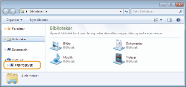 Velg utskriftsserveren fra [Nettverk] eller [Mine nettverkssteder].