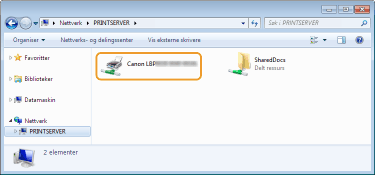 Du kan bruke utskriftsserveren til å installere skriverdrivere for en delt skriver på andre datamaskiner (klienter) på samme nettverk. Siden skriverdriverne installeres via utskriftsserveren, trenger brukerne av de andre datamaskinene ikke bruke skriverens CD-ROM/DVD-ROM.