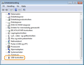 [USB-skriverstøtte] vises ikke hvis USB-klassedriveren ikke er korrekt installert. I så fall, må du lukke [Enhetsbehandling] uten å gjøre noe mer.