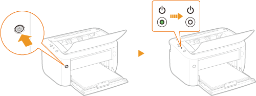 (Strøm)-indikatorlysene og maskinen er klar for utskrift.