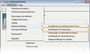 Hvilemodusfunksjonen reduserer mengden strøm som forbrukes av maskinen ved å stoppe noen interne operasjoner midlertidig. Du kan sette opp maskinen til å gå inn i hvilemodus automatisk når den har vært inaktiv i et visst tidsrom. Fabrikkinnstillingen for mengden tid som går før maskinen går inn i hvilemodus er 1 minutt. Vi anbefaler å bruke fabrikkinnstillingen for å spare mest mulig strøm. Hvis du ønsker å endre hvor mye tid som går før maskinen går inn i hvilemodus, følg prosedyren i skriverstatusvinduet.